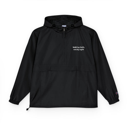 Champion Packable Anorak Jacket — Black Lightweight Windbreaker with Subtle Chest Logo